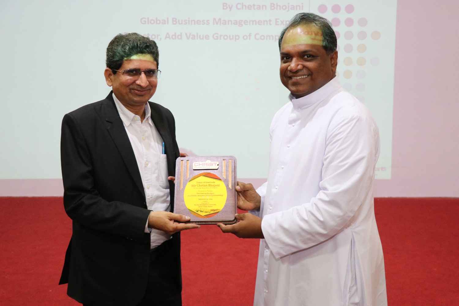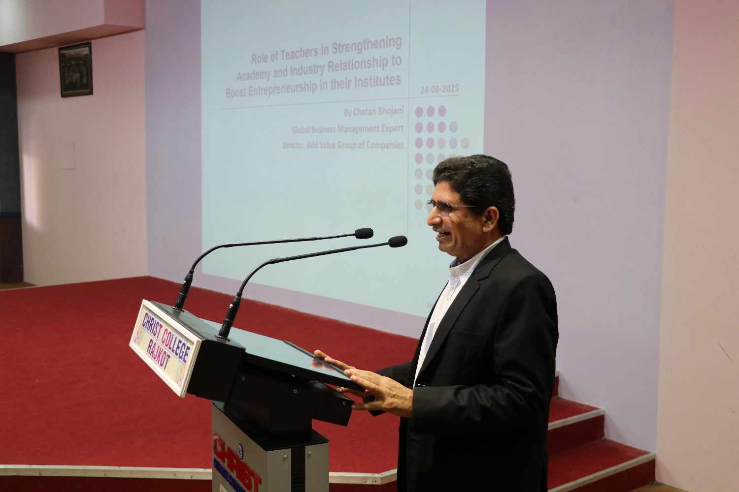 The session concluded with the felicitation of Mr. Bhojani by Rev. Fr. Dr. Jomon Thommana, Director of Christ College, Rajkot.