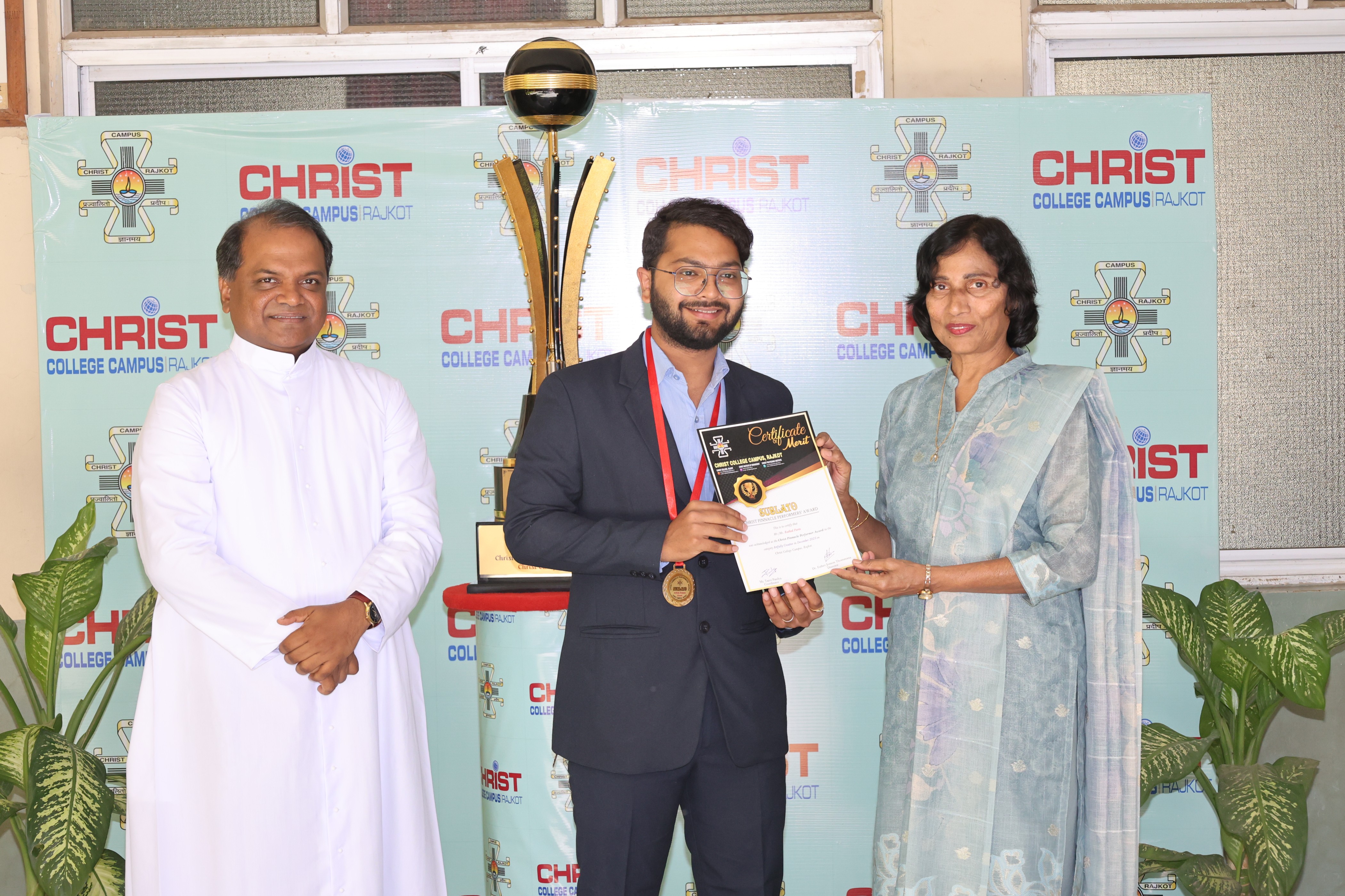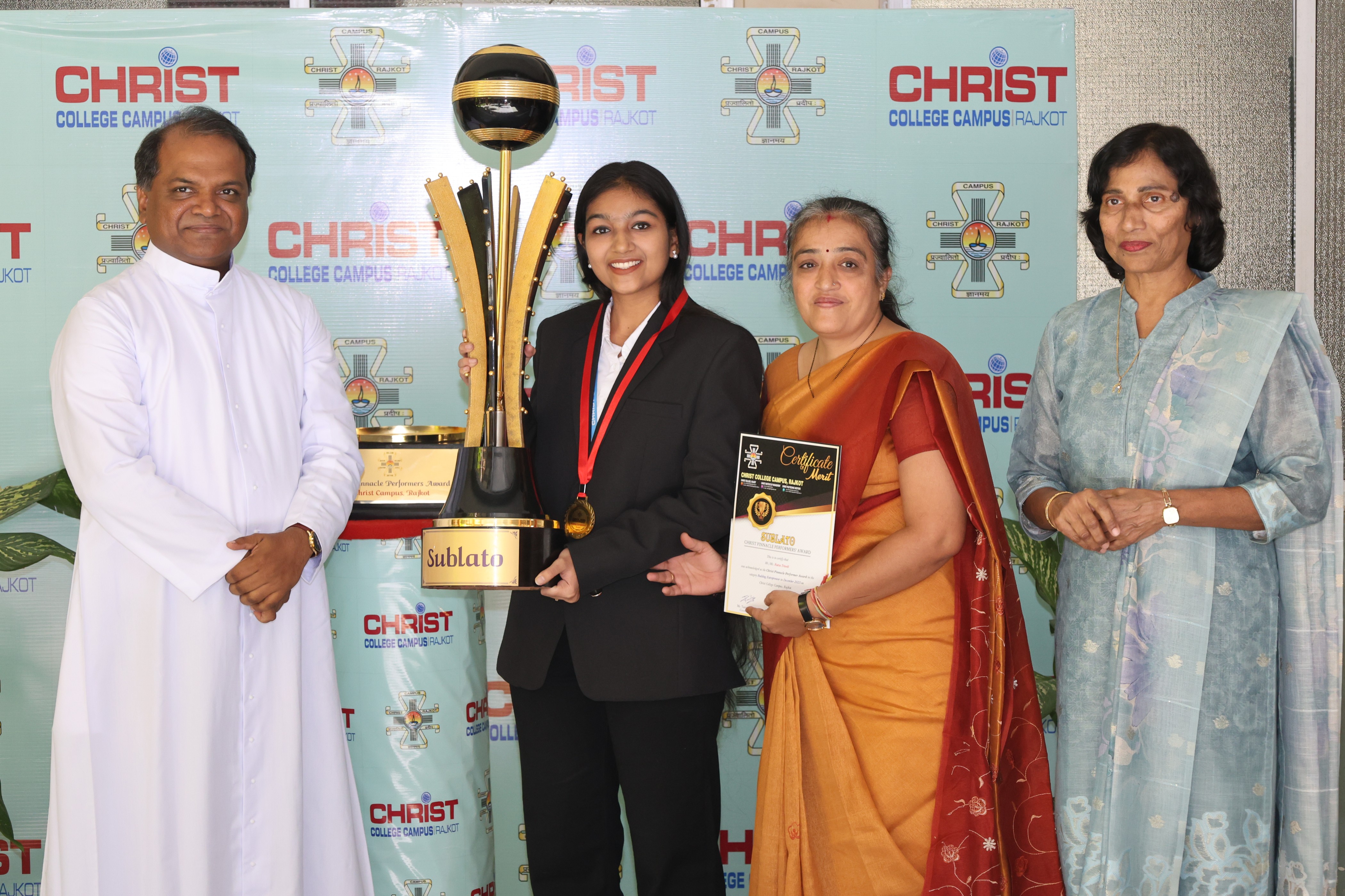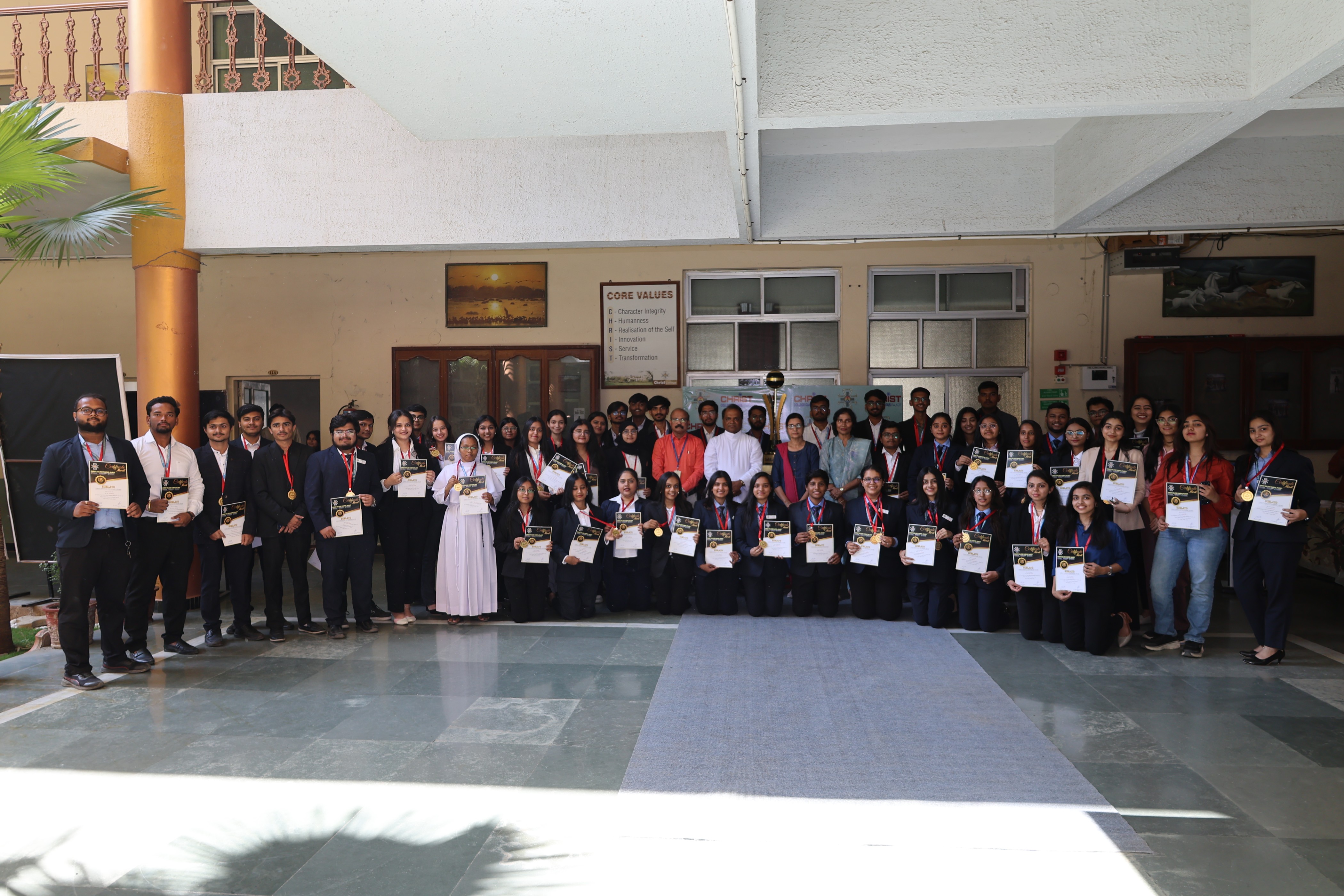 The Second cycle of the prestigious Sablato Christ Pinnacle Performer's Awards for the Academic year 2025-26 was organised on 20th Decemeber, 2025. The award ceremony was graced by the Director of the Campus Rev. Fr. Dr. Jomon Thomanna, The Finance Administrator Rev. Fr. Stanley Joseph, The Principal of the Christ Collage Dr. Yvonne Fernandes, The Principal of Christ Polytechnic Institute Ms. Nymphea Gogia and the Principal of Christ Institute of Management Dr. K. J. Thankachan along with Faculty memebers of the Campus and the proud parents of the Winners. A total of 62 winners were felicitated with a medal and certificate for their acheivemnts in diverse dedication, and excellence. The event was anchored by Mr. Chetan Pathak. The awards encouraged the students to aim higher and continue excelling in their Fields.