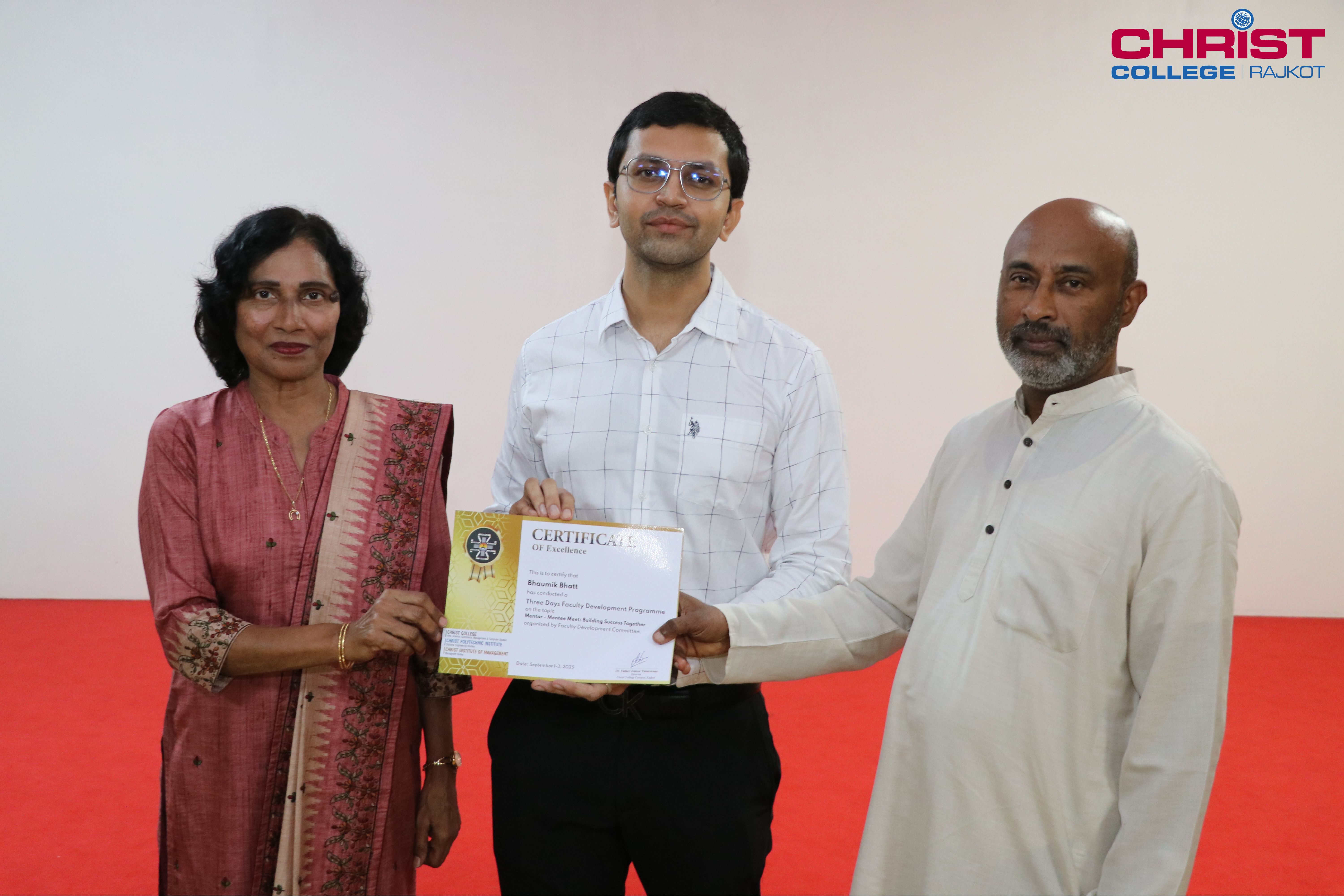 Under the visionary leadership of Dr. Father Jomon Thommana, Director, Christ Campus, and the dynamic guidance of Dr. Yvonne Fernandes, Principal, the FDP focused on effective mentorship and structured progress reporting as tools to foster student growth and faculty excellence.